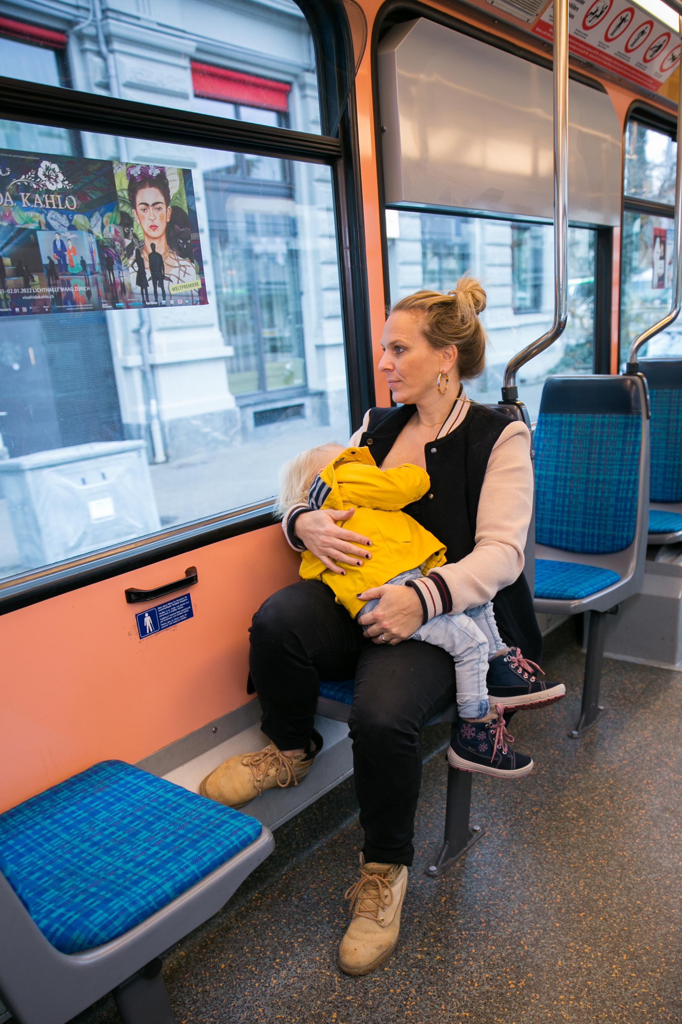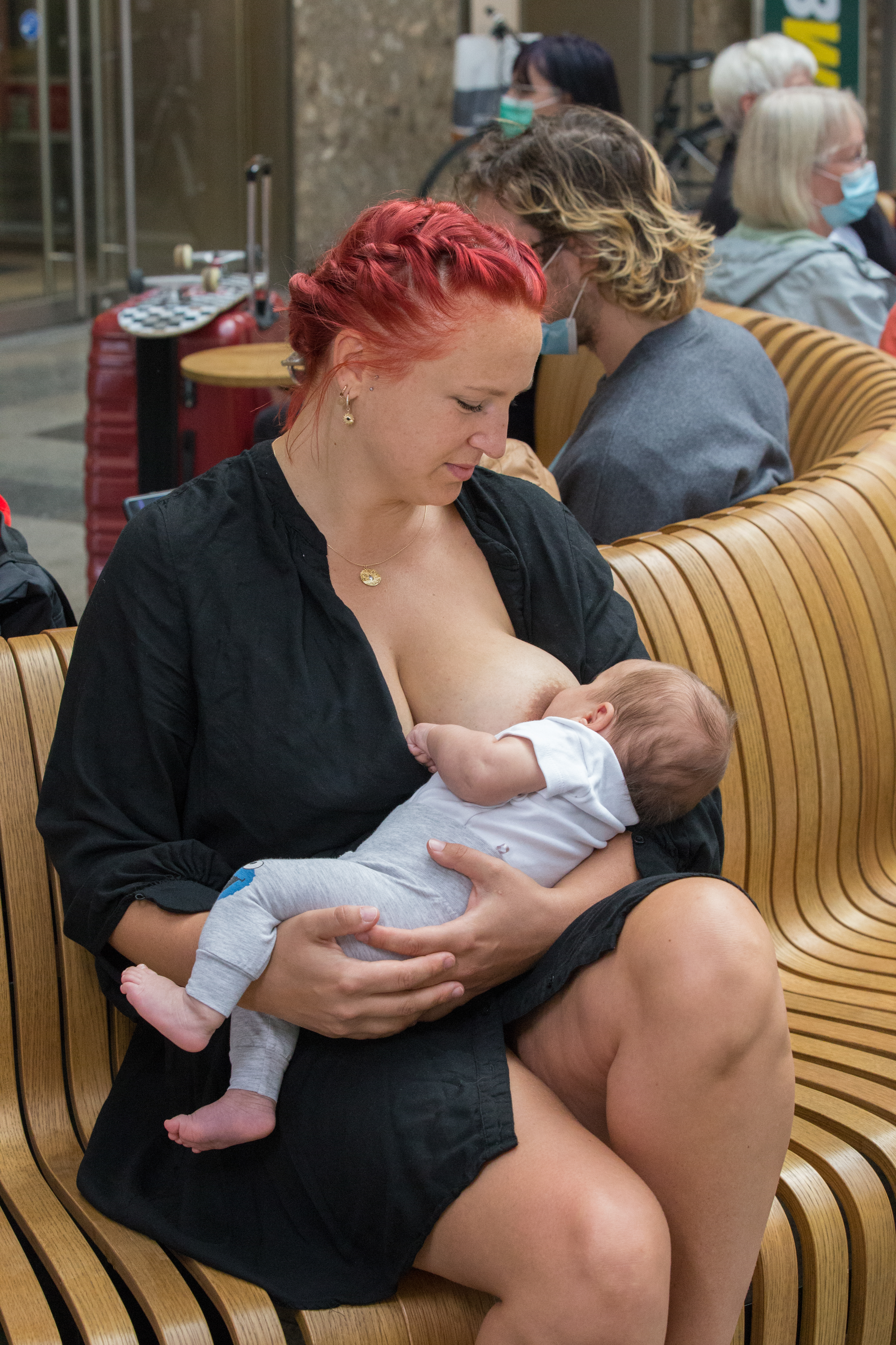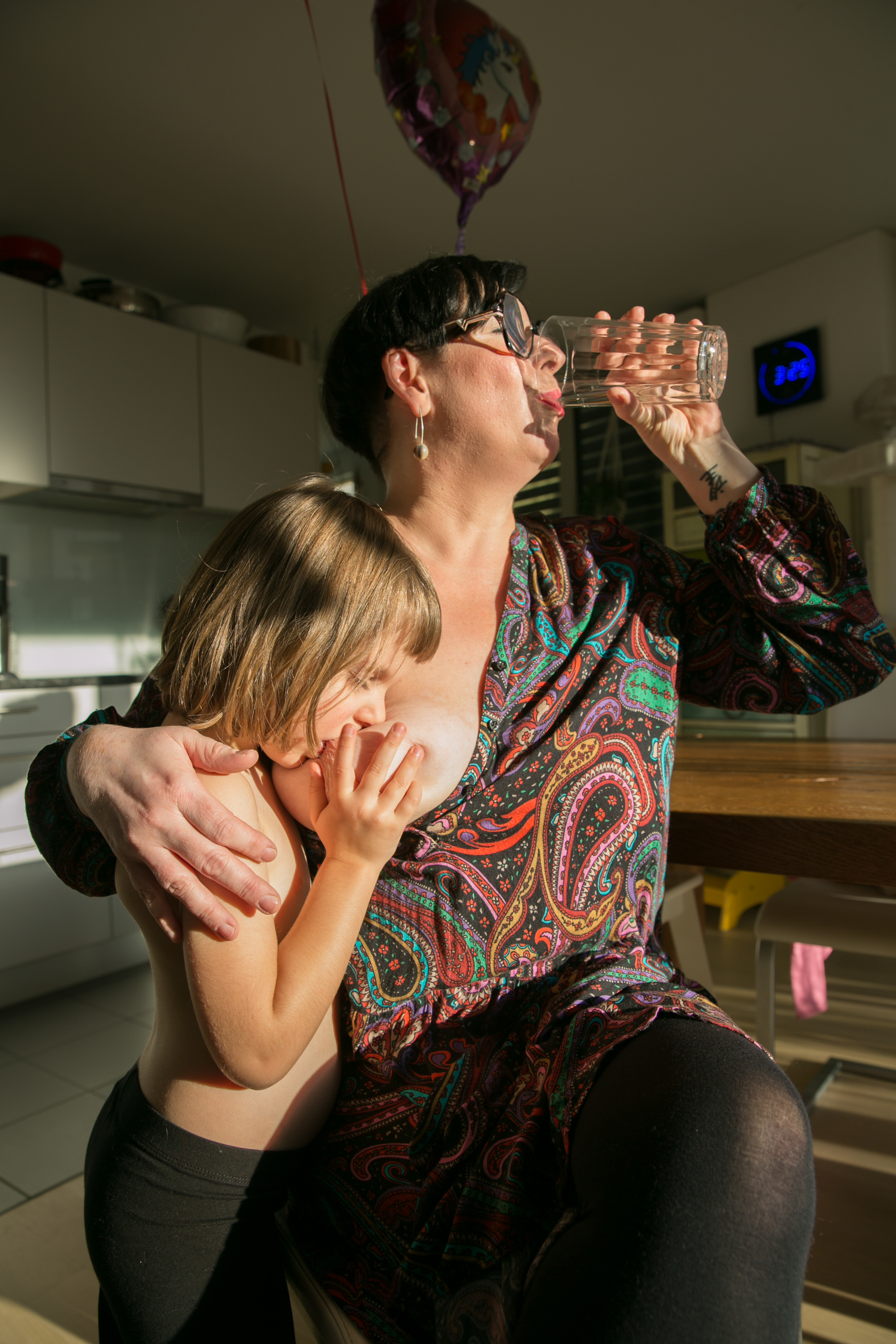 Through this project I wanted to photograph brave mothers breastfeeding their babies in public, with the exception of Steffi. At kindergarten her daughter got a strange reaction when she said she was still being breastfed. Steffi feels insecure and wants to protect her child, that’s why she wanted to be photographed indoors.