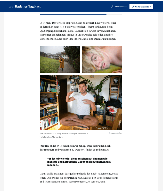 Living with HIV – a compelling photographic documentary that sheds light on the lives of HIV-positive individuals in Switzerland. The series offers an intimate glimpse into the daily lives, struggles, and triumphs of those living with HIV/AIDS, capturing the resilience and courage of these individuals as they navigate the challenges of the condition.
